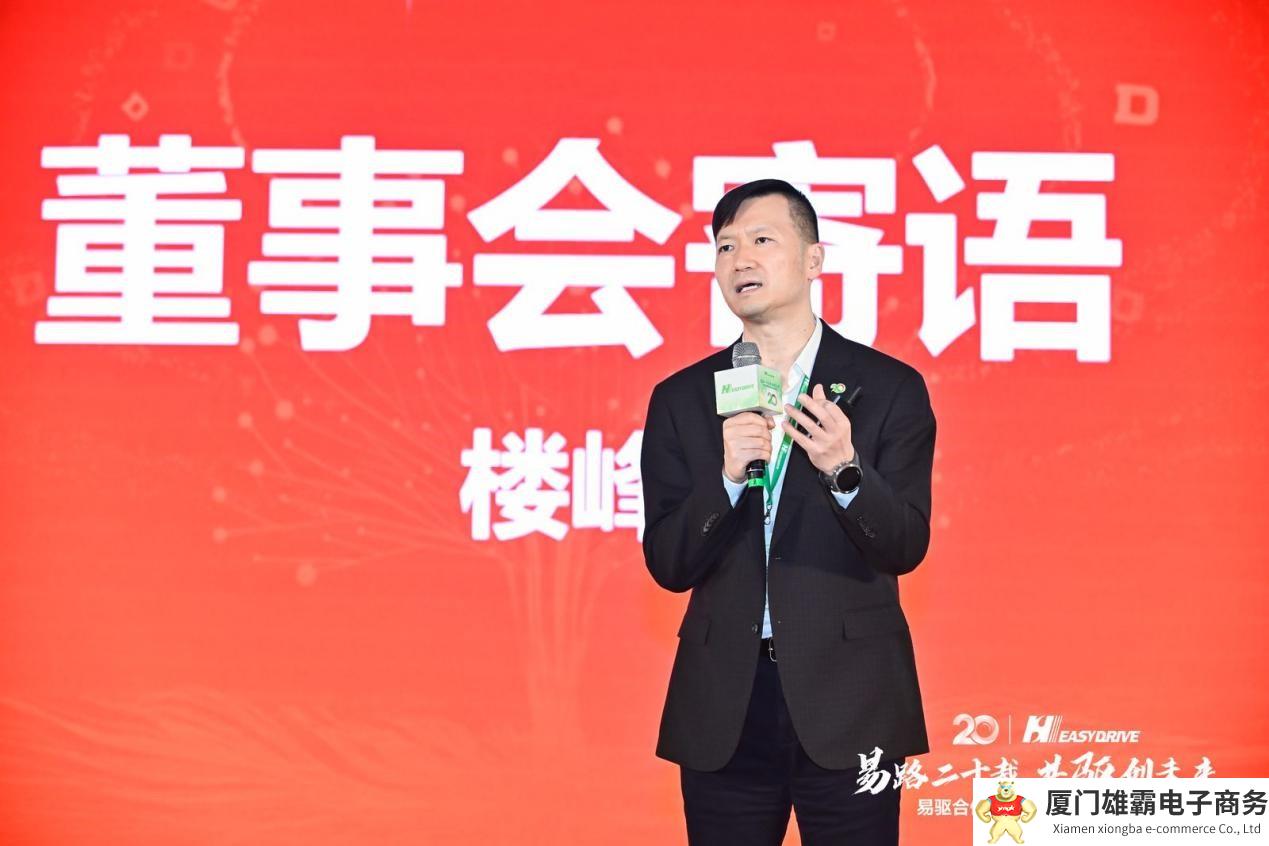 在隆重的共"驱"创未来仪式后,德力西电气总裁、易驱电气董事长楼峰首先表达了对合作伙伴的感谢,然后介绍了德力西电气的发展历史、愿景使命、公司战略、业务产品,组织文化等,强调了未来对易驱的持续赋能,并就赋能合作伙伴、研发创新、绿色零碳等方面提出了期望。