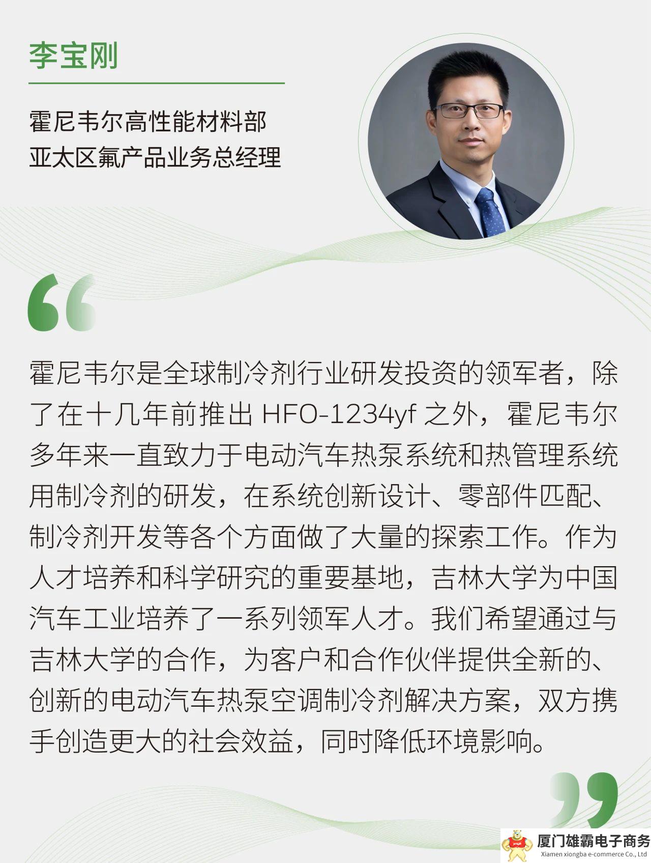 针对该问题,霍尼韦尔将在2024年加大研发投入,作为其中重要的一环,霍尼韦尔高性能材料部将和吉林大学汽车工程学院热管理团队合作以寻求全新的高性能制冷剂。本次合作开发的解决方案有望具备更优异的低温制热性能,同时可满足全球汽车对低功耗空调制冷的需求。该解决方案将具有环境友好、高效、安全、低成本等优点,更好地助力提升下一代新能源汽车的续航性能及乘坐舒适度。