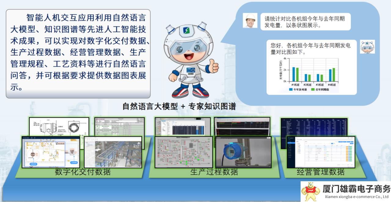 和利时智能人机交互方案充分利用自然语言大模型、知识图谱等先进人工智能技术成果,实现对数字化交付数据、生产过程数据、经营管理数据、生产管理规程、工艺资料等进行自然语言问答,并可根据要求提供数据图表展示。