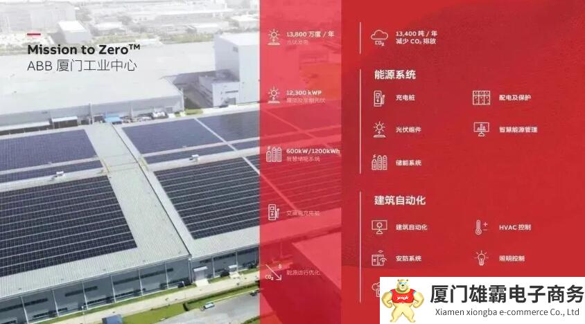 ABB厦门工业中心“绿色微电网“项目是绿色低碳能源转型的典范。通过践行ABB全球“零排放愿景计划”,该项目每年可减少13,400吨碳排放。该中心拥有ABB全球领先的中低压开关设备和断路器生产线,通过安装10万平方米的屋光伏,实现了约50%的绿电替代。