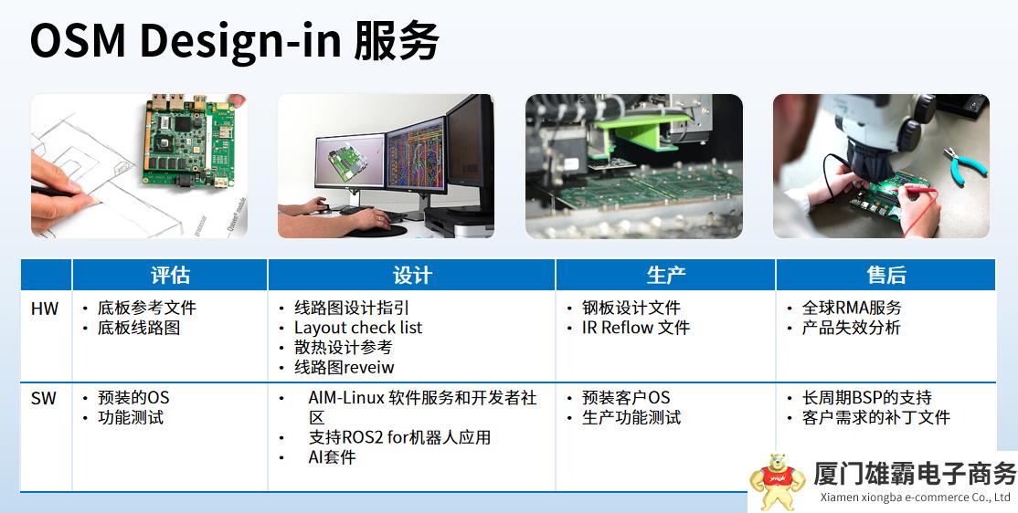 综上所述,ROM-2820核心板凭借其紧凑尺寸、强大处理能力、丰富接口支持以及标准化设计,为客户提供了一个高度灵活、性能出色的嵌入式解决方案。无论是用于需求严格的工业环境还是需要高度集成的消费电子产品,ROM-2820都能提供稳定可靠的性能支持。同时针对OSM核心板,研华还提供其对应的OSM Design-in设计服务,帮助客户顺利的完成产品开发。(见下图)