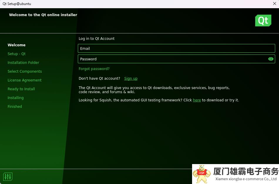 运行命令后进入安装界面,填入账号,如若没注册需要先自行注册。