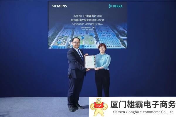DEKRA德凯管理体系与可持续发展审核总经理韦斌生先生为苏州西门子电器有限公司颁发了"2023年度组织碳排放核查声明"证书。