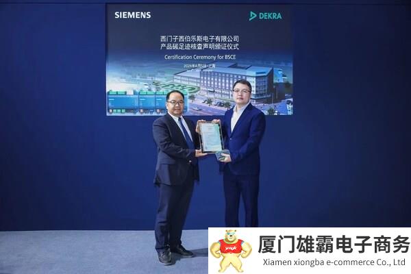 展会当天,DEKRA德凯为西门子中国有限公司下属的两家重要研发生产基地:苏州西门子电器有限公司(SEAL)和北京西门子西伯乐斯电子有限公司(BSCE)分别颁发了"2023年度组织碳排放核查声明"和"Desigo Essentials® ELC.E14控制器产品碳足迹核查声明"证书,并于展会现场西门子展台举办颁证仪式。