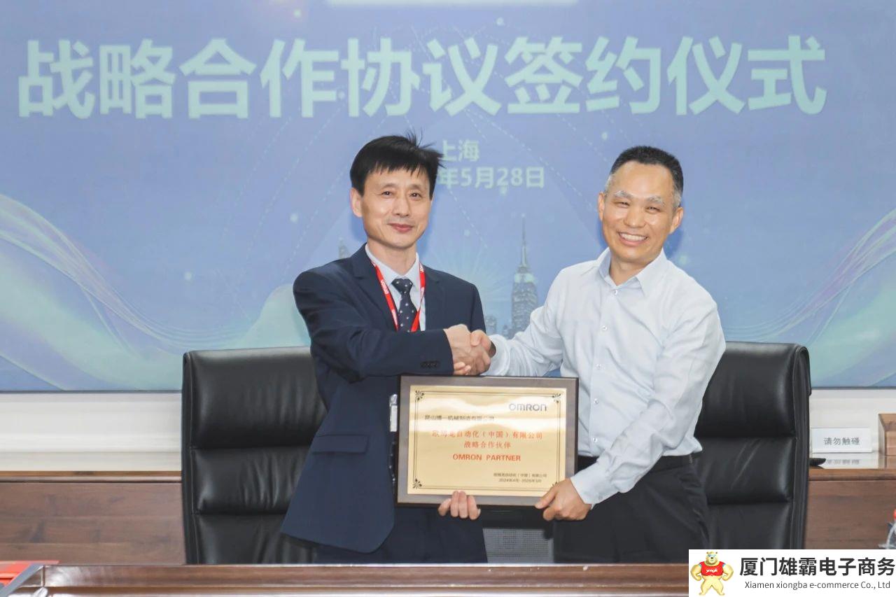 欧姆龙第三行业开发统辖事业部战略统辖部长许斌、博一机械总经理吴永成分别代表双方签约。欧姆龙副总经理、自动化技术中心长彭涛为博一机械授牌并见证签约。