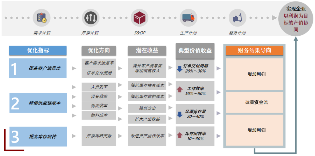 例如,对需求计划场景的赋能,可通过全面的需求感知和精准预测模型,改善预测准确性,降低库存周转天期实现建立需求计划-执行的信息闭环。对库存及补货计划场景的赋能,包括自动补货、多级库存补货,内含科学计算补货点、补货量、仓间调拨优化等多个模块,可在保证服务水平的情况下降低库存成本。对主生产计划业务场景的赋能,可制定针对不同计划颗粒度及业务决策场景的模块化算法配置方案,帮助企业快速制定不同业务目标下的排产排程方案。 同时,杉数科技也将需求、库存、主计划等优化模块,和能源、生产、销售网络等全链路进行联动,帮助企业真正实现全链路协同优化。以某化工企业为例,杉数为其打造的端到端智能决策平台,构建了包括运营、订单、协同的全链路大模型,全面优化各环节效率和质量,实现销售满足率提升8%,库存资金占用降低数千万。