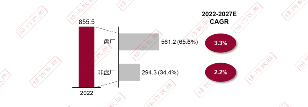 中国低压电器市场分渠道规模-盘厂/非盘厂-2022(亿元)