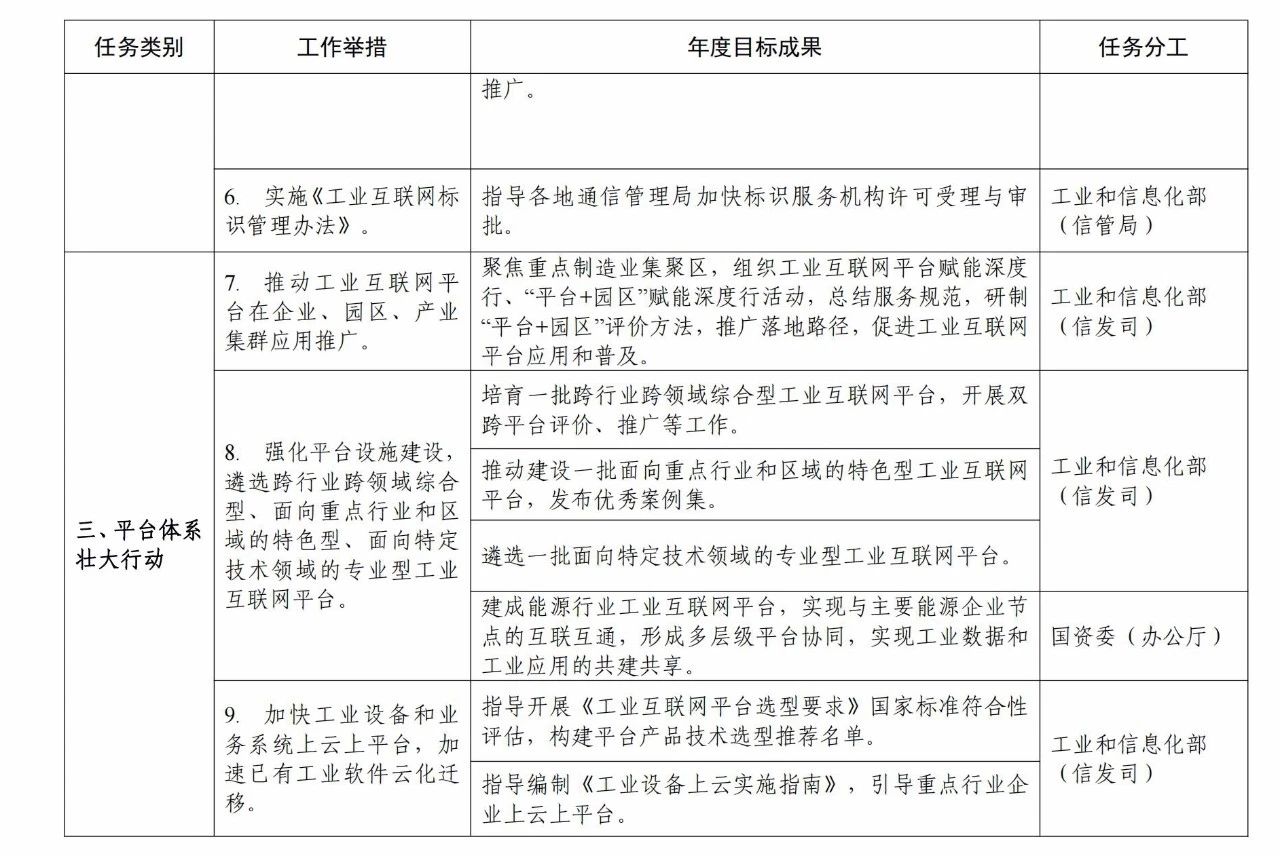 《计划》还提出,完善区域产业布局,组织遴选2个左右工业互联网方向示范基地,指导地方有序开展“5G+工业互联网”融合应用先导区建设。强化行业转型赋能,围绕电子信息、工程机械等重点行业编写行业融合应用指南。同时,加快示范标杆树立,遴选不少于100工业互联网试点示范项目,遴选不少于100个工业互联网平台模式创新应用案例,加大民爆行业“工业互联网+安全生产”试点示范工作力度,完成一批面向重点行业的数字化转型创新场景。