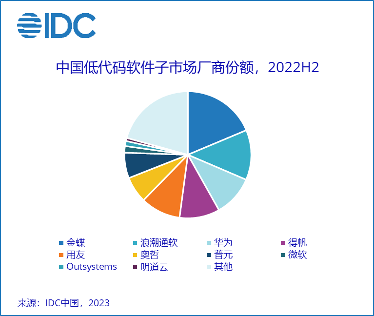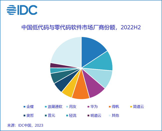 2022下半年中国低代码与零代码软件子市场厂商份额情况如下: