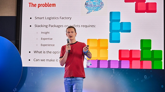 像 3D 俄罗斯方块一样移动箱子?乍一看,这是 SICC 团队的项目,但幕后还有更多内容。SICC 团队的 Merlijn Däscher 解释道,他们的想法源自一次对分销中心的访问:“我们看到有人在打包纸箱并准备发货,我们想:‘这必须变得更加容易!’”SICC 团队找到了这个问题的解决方案。他们使用 Deep Learning 训练了一个人工智能模型,以弄清楚如何理想地堆叠纸箱。不同的纸箱尺寸,不同的高度——所有这些方面都需要教给人工智能,以便它可以更好地工作并提高效率。最终,它应该能够以敏捷高效的方式独立完成这项工作,提高工厂和加工工业中的生产率,以及其他物流行业的效率,例如在飞机上堆放行李箱。