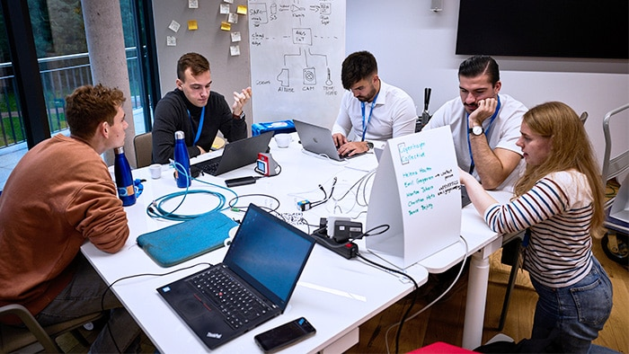 在这场为期三天的竞赛中,其他团队是如何应对挑战的?梅拉达伦 (Mälardalen) 大学的瑞典团队在第一天首先专注于 Brainstorming(头脑风暴),决定哪个想法对大家来说是最合适的。第二天,他们创造了相应的原型。他们的主题是压缩空气泄漏,这是生产和工业中众所周知的问题。团队代表 Hanna Brouillette 解释了他们的合作方式:“必须保持开放的态度,集思广益,尤其是在项目开始时,否则便会很快陷入困境。”