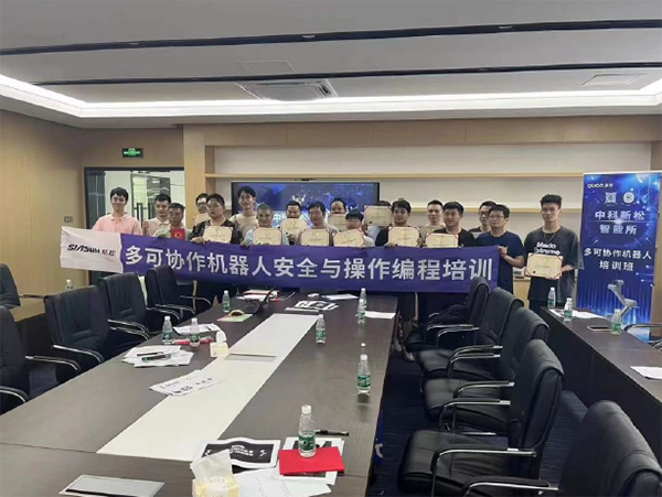 针对企业、高校、企业等应用客户技术或管理人员,创新中心将定期开展机器人与应用技术培训与技术沙龙等相关活动,由中科新松提供常态化培训,包括DUCO Core使用培训(基础与硬件);技术应用培训。考核通过发放证书。目前,已经成功举办两期,受众人数60多人。
