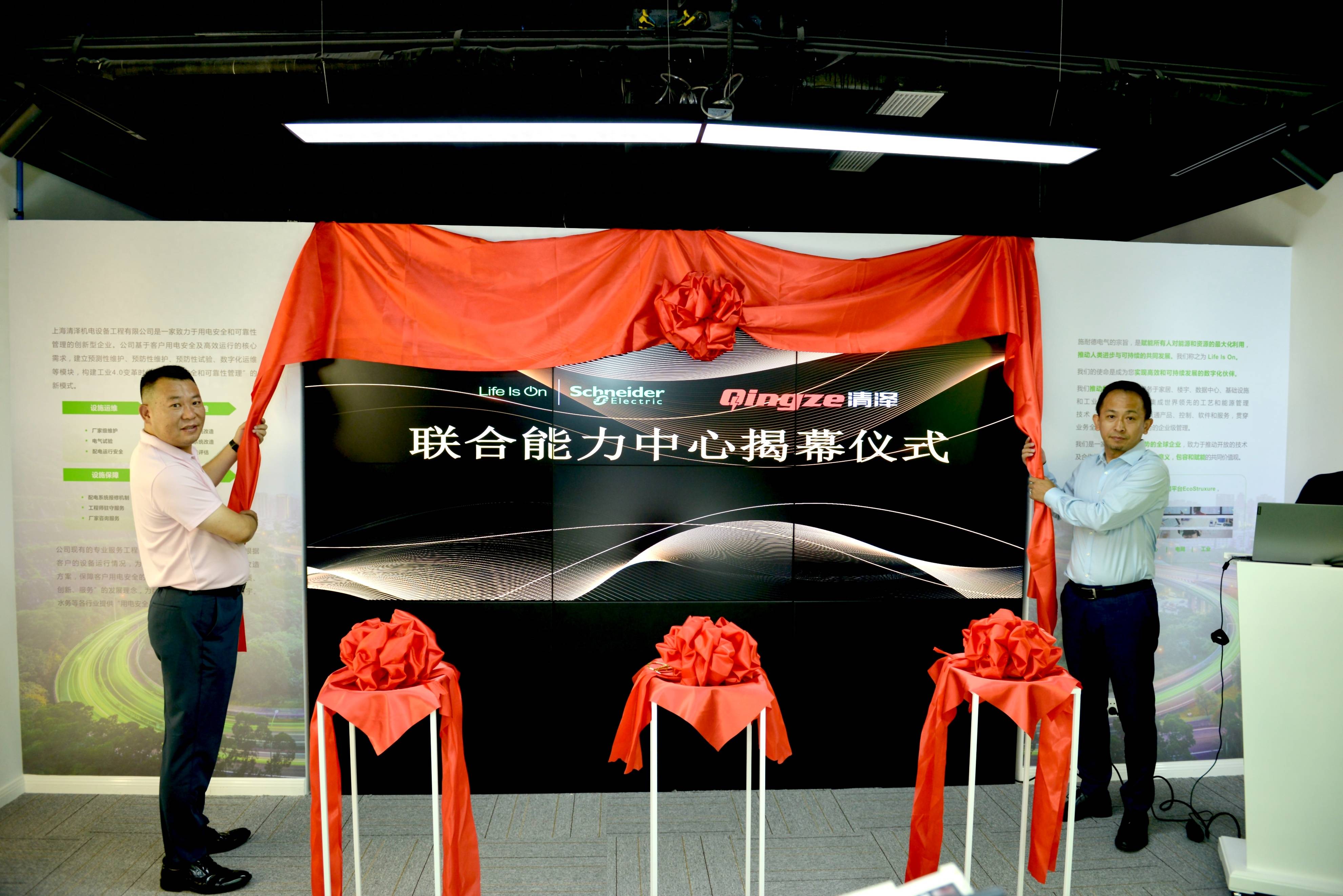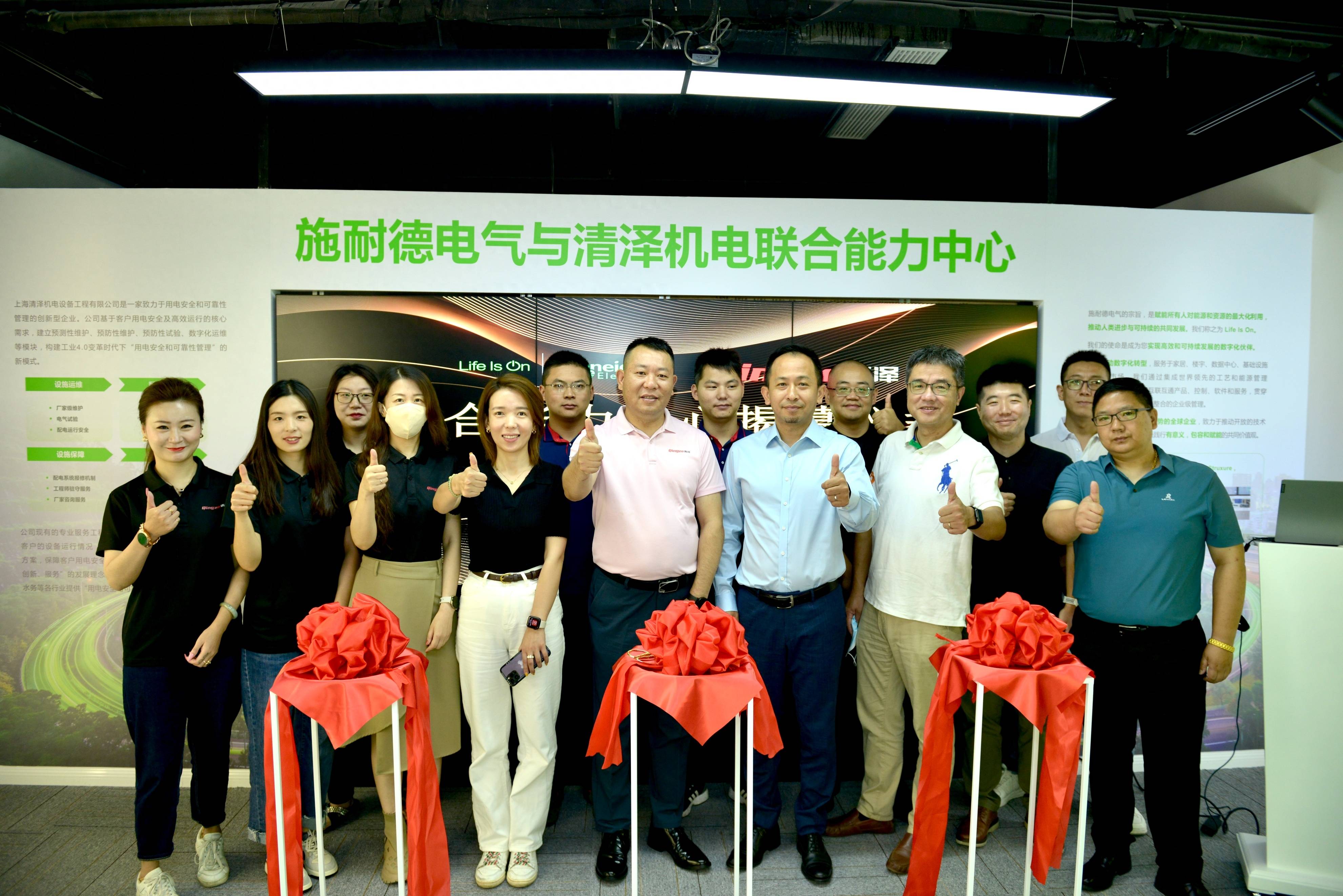 施耐德电气全国销售部上海大区地区总裁蒋斌斌、上海清泽机电设备工程有限公司执行董事谢晓辉等领导出席并见证了联合能力中心的正式落成。