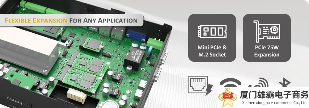 支援独立四显(DP/HDMI/VGA/CDS),P2202 系列除了拥有原生I/O外,透过内建的Mini PCIe、M.2 Key E 插槽可支援如4G、WIFI、蓝牙等无线通讯模组,其中P2202E还拥有PCIe插槽可支援75W的扩充卡,针对特殊用途更可透过德承专属模块的模组化扩充功能增加POE或是IGN功能。