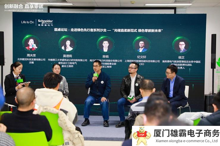 此外,行业聚力打造“共享、交流、共赢”的市场氛围,共同推动产业低碳发展在绿色背景下也显得尤为重要。在“走进绿色先行者”圆桌论坛环节,施耐德电气能源管理低压业务中国区战略和创新孵化团队负责人侯正与来自华南理工大学建筑设计研究院有限公司建筑设计三院电气副总工程师莫理莉、南方电网电力科技股份有限公司新能源与储能事业部资深工程师陈锐、上海固特安能捷低碳科技有限公司CEO纪文轩等多位嘉宾齐聚一堂,共话新型电力系统下“光储直柔”技术的现状、挑战、未来以及对于泛建筑领域降碳的重大价值,以实际行动凝聚共识,加速促进行业发展。