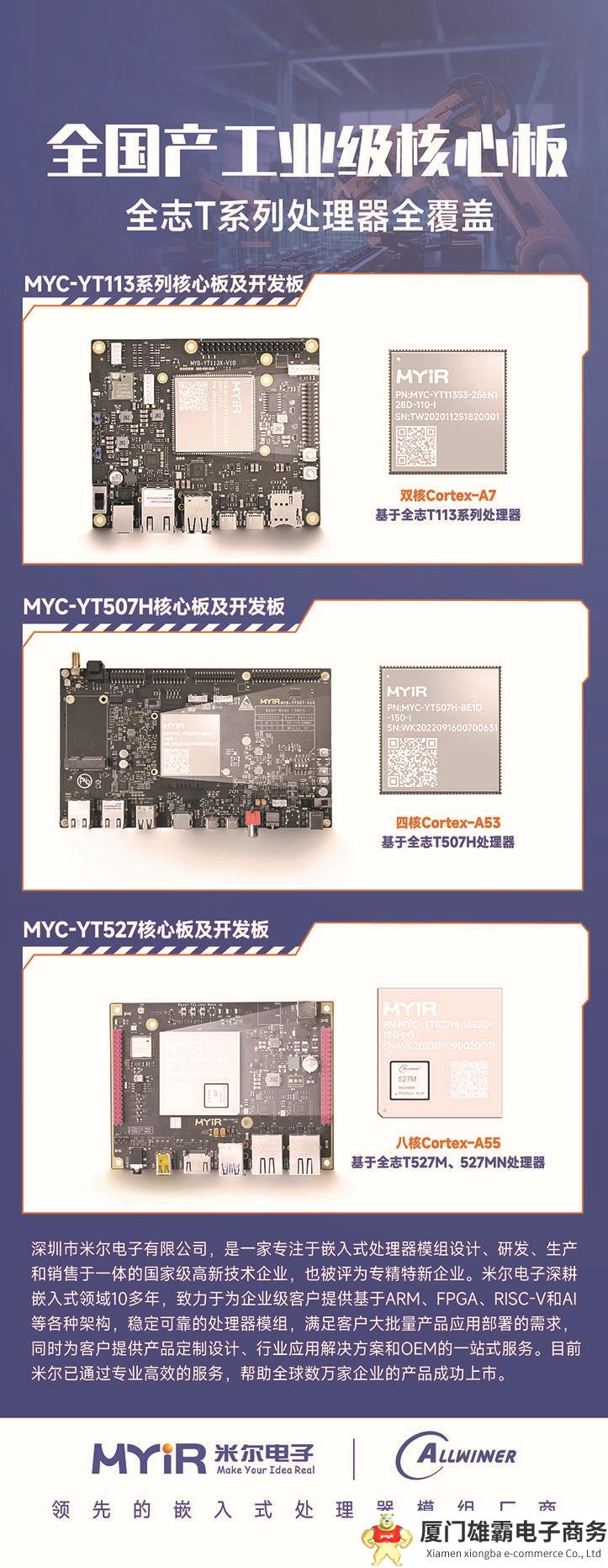 米尔作为领先的嵌入式处理器模组厂商,与全志科技保持深度合作,提供基于全志T系列全覆盖的核心模组和配套评估开发板,包括双核Cortex-A7的入门级T113系列、四核Cortex-A53的T507系列、还有八核Cortex-A55的T527系列等,配置全、选择多,满足客户的多样化选型需求,助力开发。此次开发大会,米尔展示的产品,吸引了广大行业客户、学生、工程师等前来了解和交流。