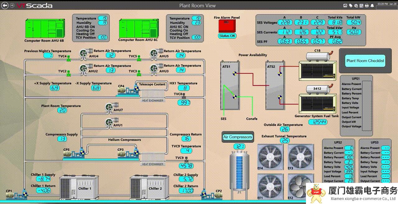 - 监控管场内UPS 装置、空气压缩机、火灾警报系统、精密的冷却设施等各类关键设备运转信息,保障天文望远镜的稳定运行。