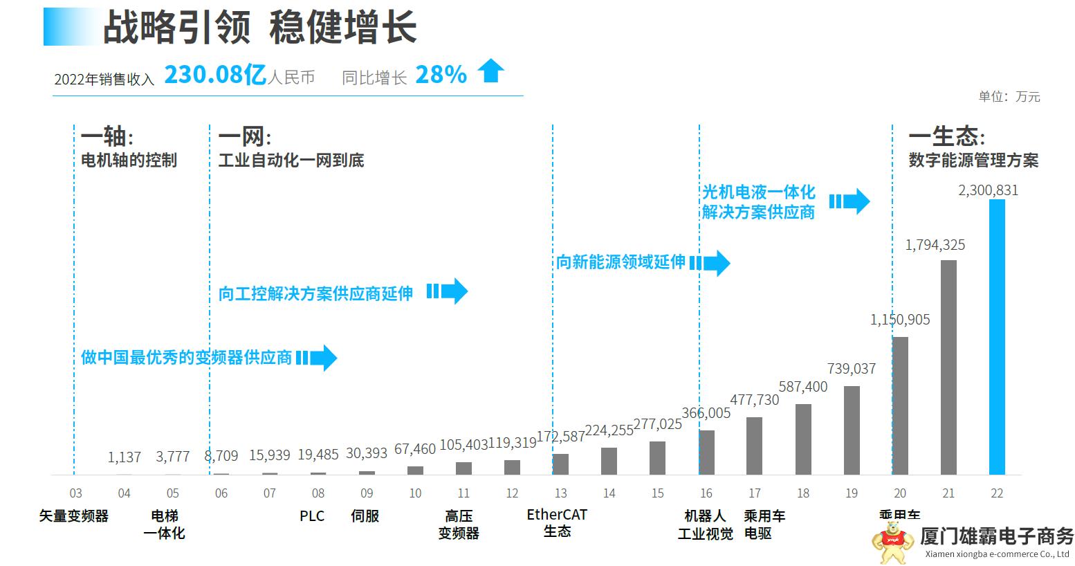 此外,汇川技术过程工业总裁李昕分享了“汇川历史与快速发展的秘密”,纵观汇川发展史,李昕认为这离不开汇川在各个阶段的战略选择。