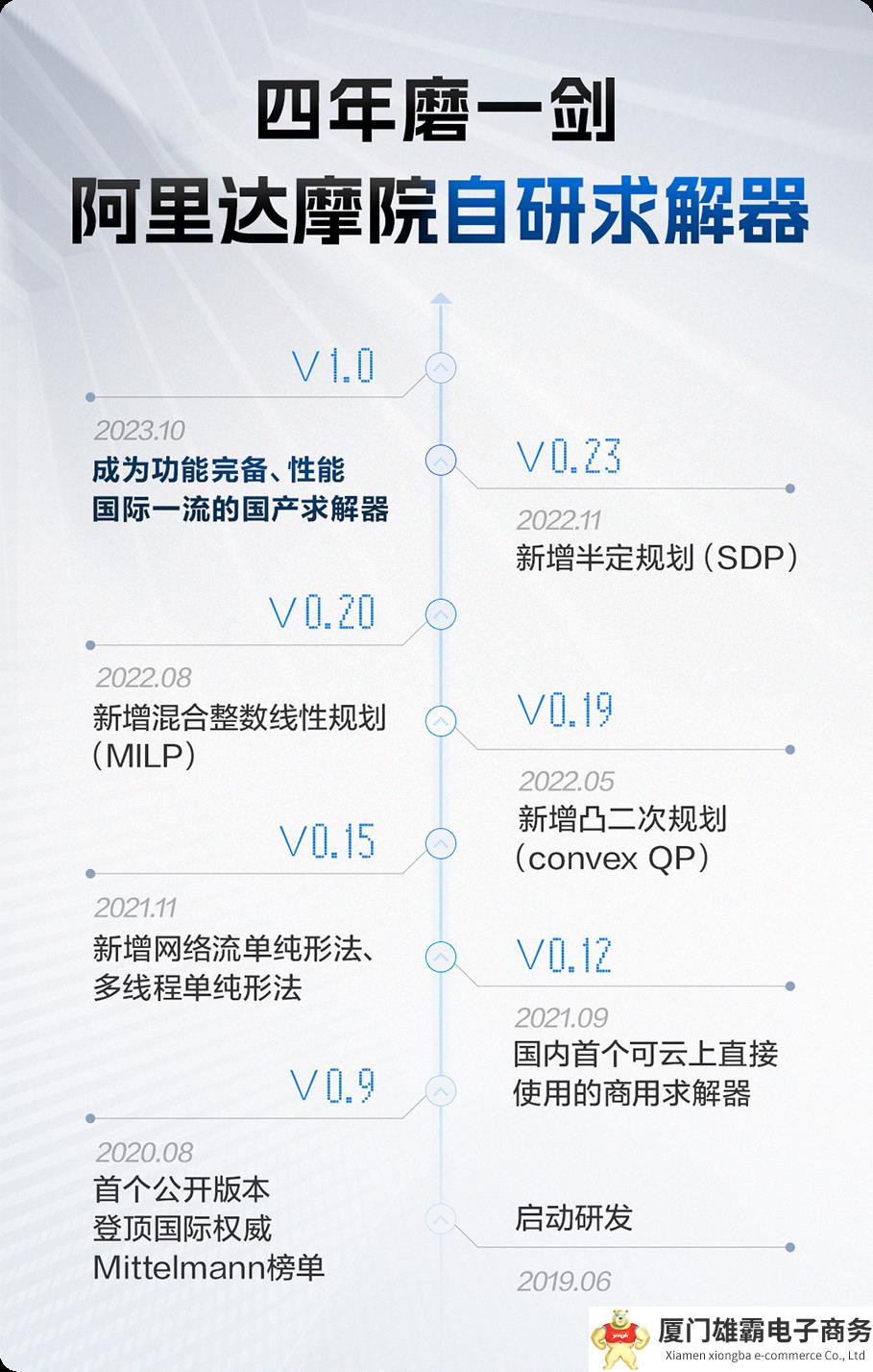 达摩院决策智能实验室在国际知名数学家印卧涛带领下,自2019年起就致力于求解器研发,从零起步,经历四年、迭代26个版本,终于在2023年10月正式推出V1.0版本,成为功能完备、性能领先的自研求解器。