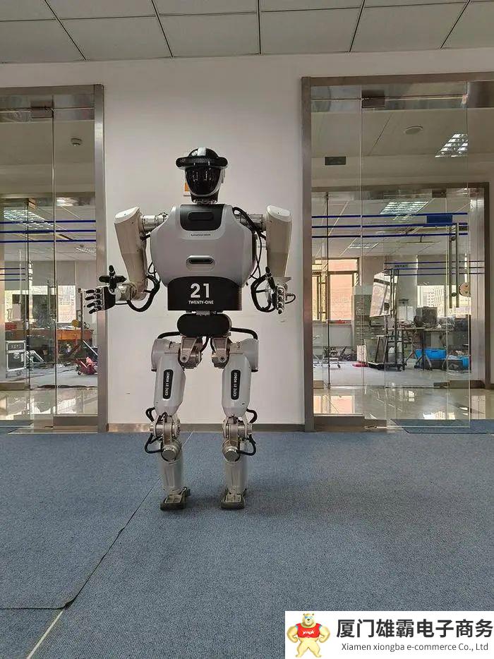 从外观上看,这款人形机器人设计也较为独特,整体以银灰色为主,身型上以黑色为底色并标有“21”所,科技感“拉满”。