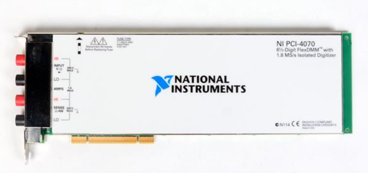 The NI PCI-4070 is a 6½ bit FlexDMM that offers exceptional processing rates, high precision and consistent measurement accuracy. In the past, this perfect combination of speed and precision was only seen on high-precision digital multimeters (DMM) that cost thousands of dollars or more. NI's unique FlexDMM technology enables the NIPCI-4070 to also be used as a fully isolated high-voltage digitizer for waveform acquisition at ±300V input with a sampling rate of up to 1.8MS/s. With the analysis function in NILabVIEW software, you can analyze the collected waveforms in the time and frequency domains. With superior speed, accuracy and functionality, the PCI-4070 is ideal for automated testing in production and R&D environments.