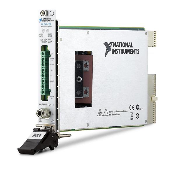 ±100 V, ±100 mA DC, 2 W DC, 10 pA Precision PXI Source Measurement Unit - The PXI-4132 is a programmable high precision source measurement unit (SMU). It features a single isolated SMU channel that provides a four-quadrant output with integrated remote (4-wire) sensing capabilities. Due to its high measurement resolution integrated protection, the PXI-4132 is ideal for high-precision leakage measurement of integrated circuits, discrete components, PCBS and cables. You can also use the onboard hardware sequence generation engine for high-speed I-V measurements of various components, including diodes and organic leds. In addition, you can synchronize multiple PXI-4132 modules through the PXI backplane, providing high-speed I-V measurements on transistors and more complex devices.
