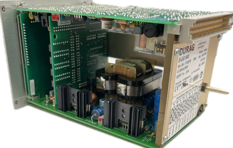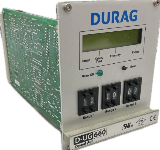 The Durag D-UG 660 is a flame detector designed to detect and react to flame conditions. The accessory is self-monitoring and fail-safe with 24 VDC power supply, 115/230 VAC and IP00 protection. In addition, it is equipped with flame and status relays with a pre-configured on-off threshold and safety time combination.
