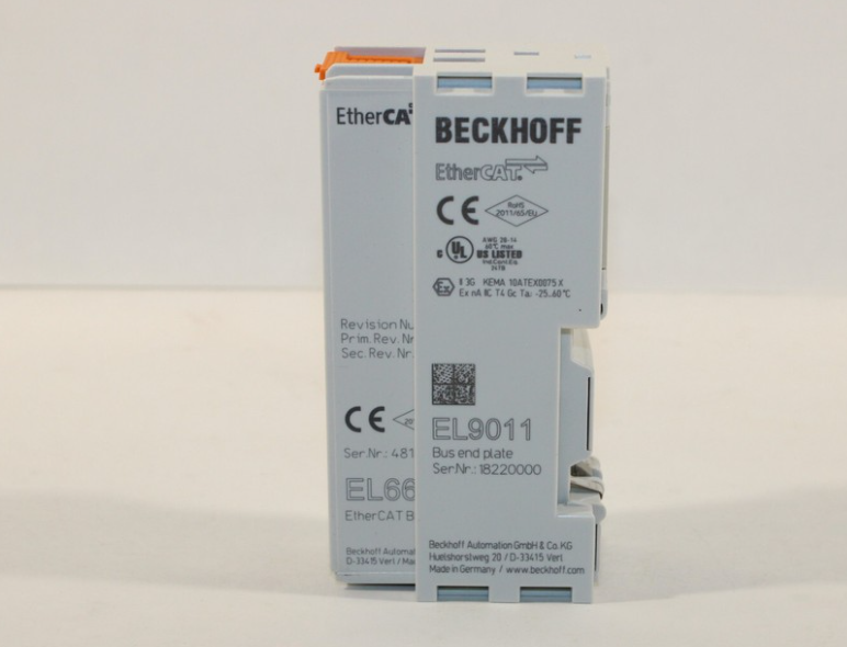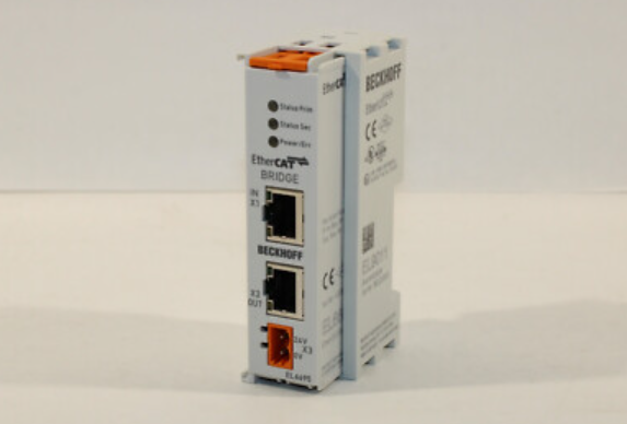 The EL6695 EtherCAT bridge module enables real-time data exchange between the EtherCAT terminal module and different master stations. It also supports asynchronous communication through AoE, FoE, EoE, NPI, etc. Distributed clocks can be synchronized in both directions. The EL6695 differs from the EL6692 (which will continue to be offered) in flexible CoE configurations, device simulation options, and significantly improved data throughput. Like the EL6692, a convenient configuration interface is available in TwinCAT System Manager. The secondary side (RJ45) is powered by an external connection, and the primary side is powered by an E-bus. Bridging terminals can also be used to integrate subordinate PC systems as EtherCAT slaves.